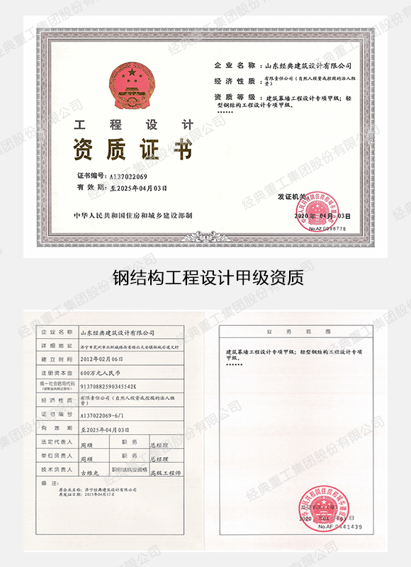 • 鋼結構工程設計甲級資質