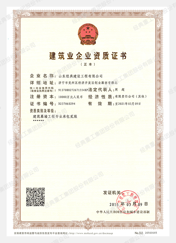 • 建筑幕墻工程專業承包貳級資質