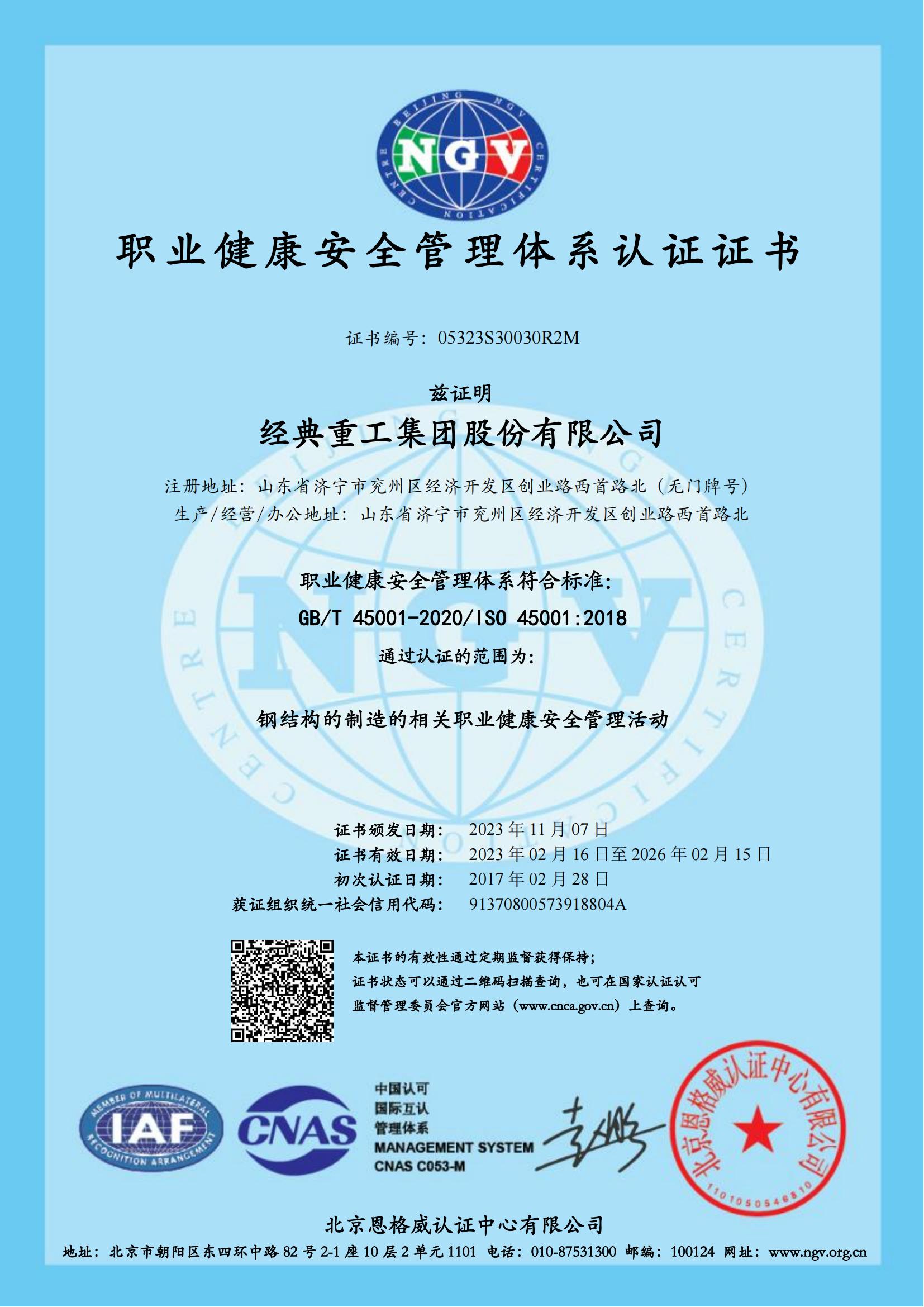 • 職業健康管理體系認證