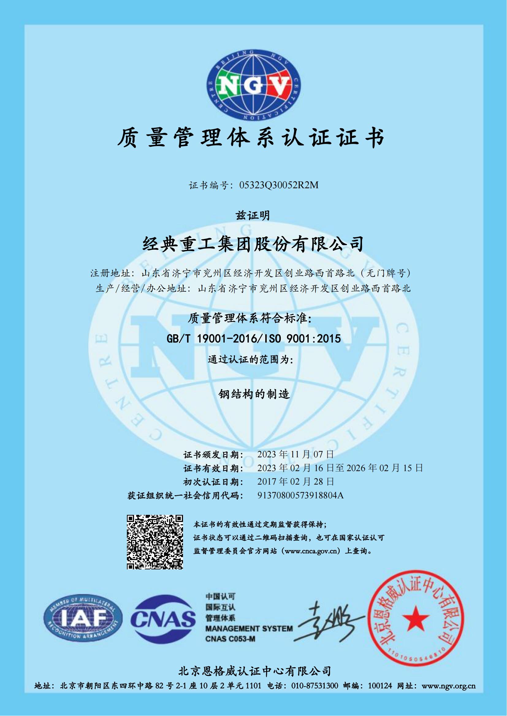 • 質量管理體系認證