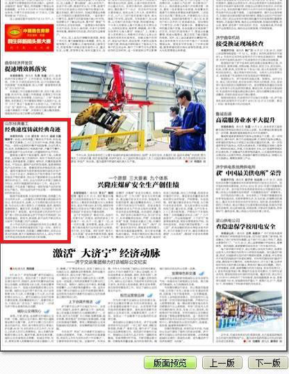 濟寧日報報道經典集團:經典速度鑄就經典傳奇