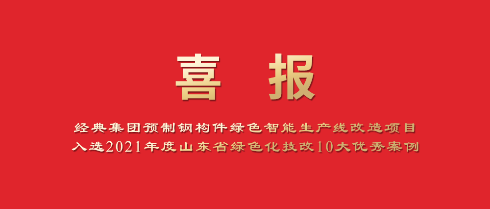 6月1日,省工業和信息化廳發布公告,山東經典重工集團股份有限公司“預制鋼構件綠色智能生產線改造項目”入選“2021年度山東省綠色化技改10大優秀案例”。