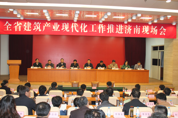 山東省住房和城鄉建設廳副廳長李興軍,總工程師顧發全,節能科技處處長殷濤,工程建設處處長欒厚杰,勘察設計處處長殷枝俏等領導出席會議。山東省各地市建設局相關人員及建筑產業現代化相關企業二百人參加。