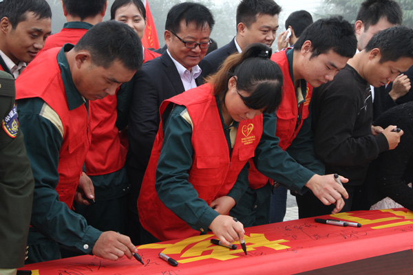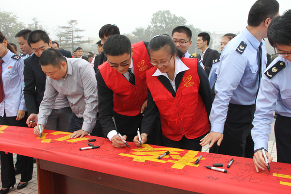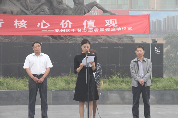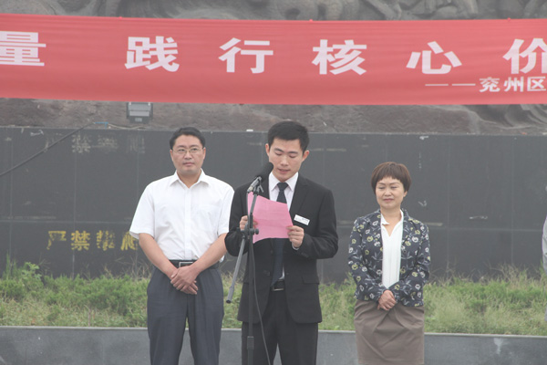 儀式由王仁娜副區(qū)長(zhǎng)主持。區(qū)委宣傳部副部長(zhǎng)邢衛(wèi)紅宣讀了《兗州區(qū)弘揚(yáng)社會(huì)正能量踐行核心價(jià)值觀倡議書(shū)》。集團(tuán)公司志愿者卞中凱作為全區(qū)企業(yè)屆代表作了表態(tài)發(fā)言。儀式上頒發(fā)了活動(dòng)宣傳書(shū)籍和資料。初建偉部長(zhǎng)作了重要講話。活動(dòng)最后,廣大志愿者們?cè)诨顒?dòng)條幅上鄭重簽下了自己的名字。