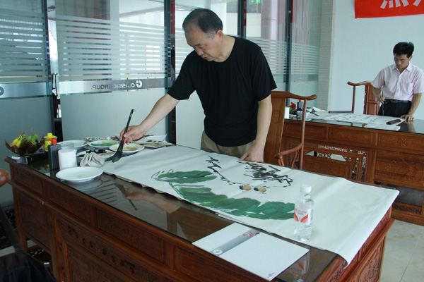 山東美術家協(xié)會會員,兗州市美術家,書法家,攝影家協(xié)會主席李寶亮;兗州市書法家協(xié)會副主席何愛民等10多位書畫家,齊聚一堂,揮毫潑墨,進行了書畫表演和精心創(chuàng)作。書畫大師們共展出近70幅精品力作,作品藝術形式多樣、內容取材各異,具有較高的藝術水平。 這次書畫聯(lián)誼筆會給集團公司留下了不可多得書畫墨寶,將由經典集團公司永久珍藏。