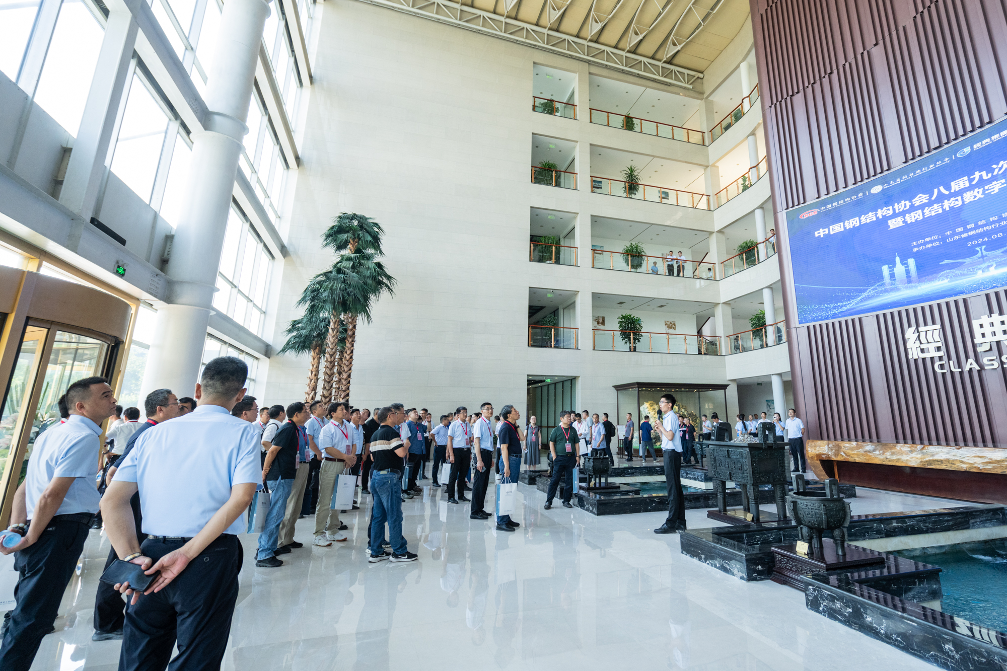 中國鋼結(jié)構(gòu)協(xié)會常務(wù)副會長劉毅,兗州區(qū)委副書記、區(qū)長王營,中國鋼結(jié)構(gòu)協(xié)會秘書長李慶偉,山東建筑大學(xué)教授、山東省鋼結(jié)構(gòu)行業(yè)協(xié)會會長周學(xué)軍,中國鋼結(jié)構(gòu)協(xié)會副會長、經(jīng)典集團董事會主席苗樹文,經(jīng)典集團董事長史振華以及兗州區(qū)委區(qū)政府領(lǐng)導(dǎo)、區(qū)建設(shè)主管部門領(lǐng)導(dǎo)、鋼結(jié)構(gòu)行業(yè)專家學(xué)者、行業(yè)協(xié)會會員單位代表、企業(yè)代表等200余人齊聚一堂,為鋼結(jié)構(gòu)行業(yè)數(shù)字化發(fā)展共謀良策,譜繪藍圖。