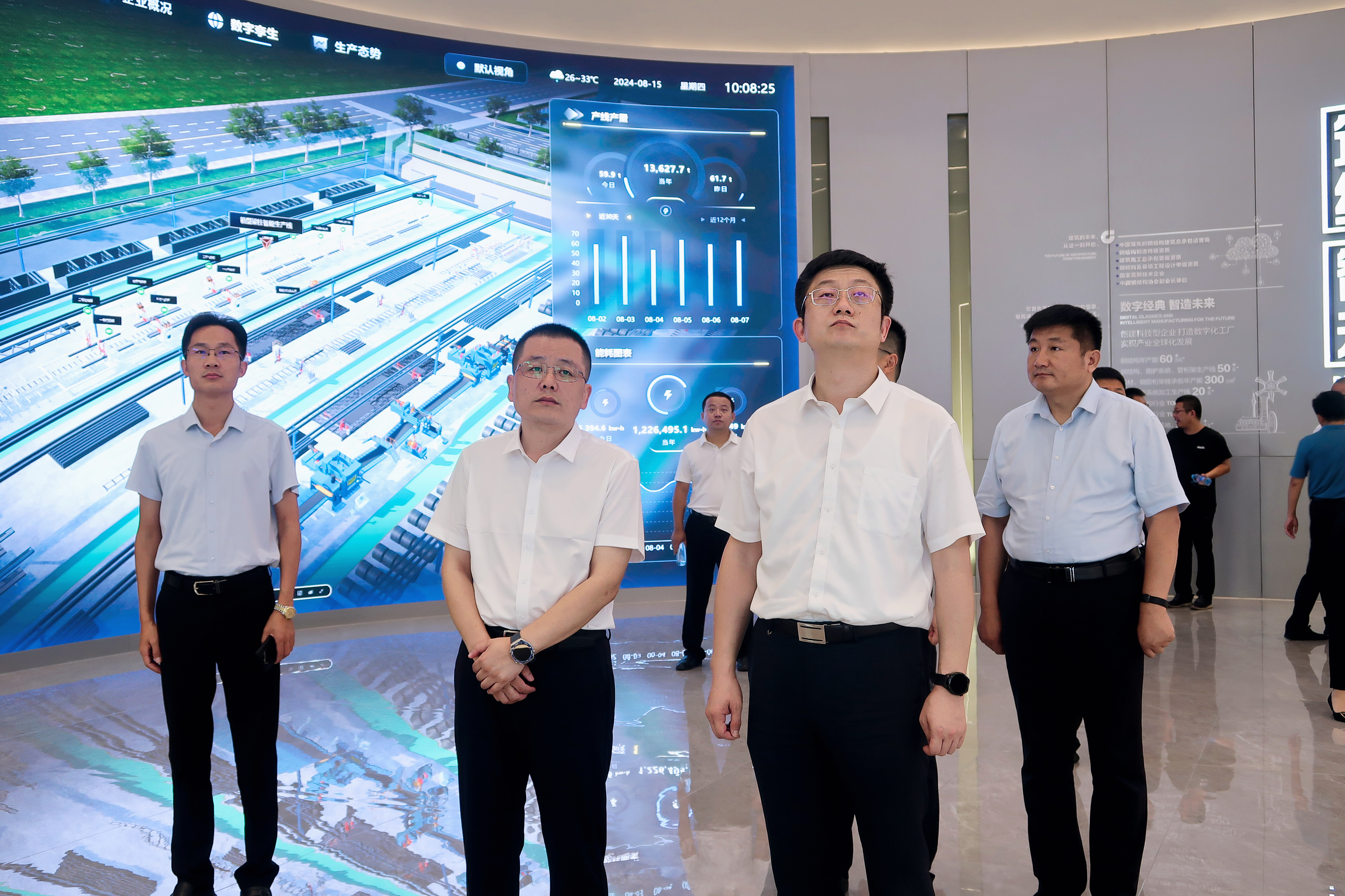 王慶書記一行來到集團(tuán)展廳察看工業(yè)數(shù)字化信息平臺(tái)建設(shè)情況,詳細(xì)了解了數(shù)字生產(chǎn)、數(shù)字設(shè)備、數(shù)字孿生以及產(chǎn)業(yè)數(shù)字化發(fā)展等情況,對(duì)經(jīng)典集團(tuán)數(shù)字化轉(zhuǎn)型的先進(jìn)做法和取得成效給予了充分肯定。他強(qiáng)調(diào),要繼續(xù)保持創(chuàng)新發(fā)展的良好勢(shì)頭,加快推進(jìn)數(shù)字化轉(zhuǎn)型,不斷深化數(shù)字賦能工業(yè)發(fā)展,探索更多新技術(shù)、新應(yīng)用、新模式,進(jìn)一步提升企業(yè)的智能化水平和核心競(jìng)爭(zhēng)力。